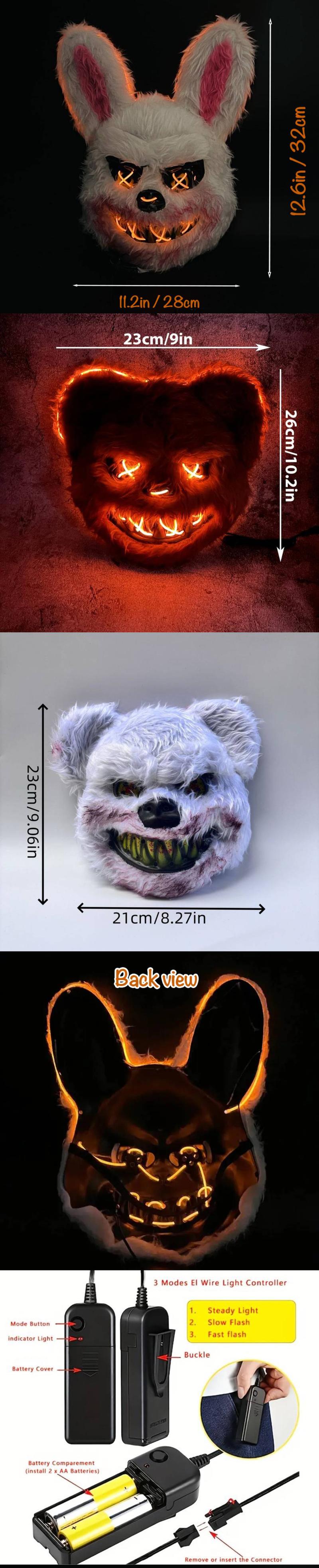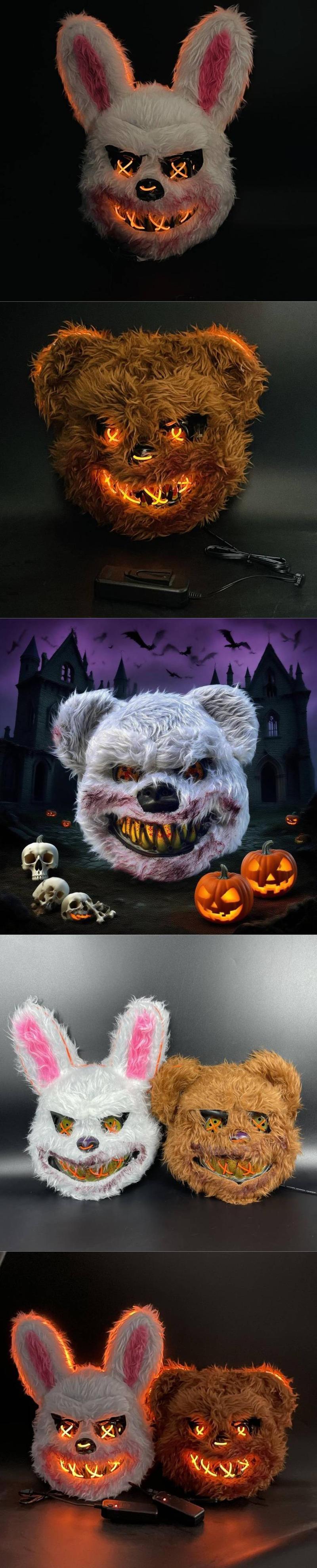 Halloween LED Scary Mask, Trendy LED Light up Rabbit and Bear Mask, Cool Subculture Punk Cosplay Luminous Mask, Creative Party Accessory Masquerade Horror, Battery Powered, for Men and Women Lightweight Christmas